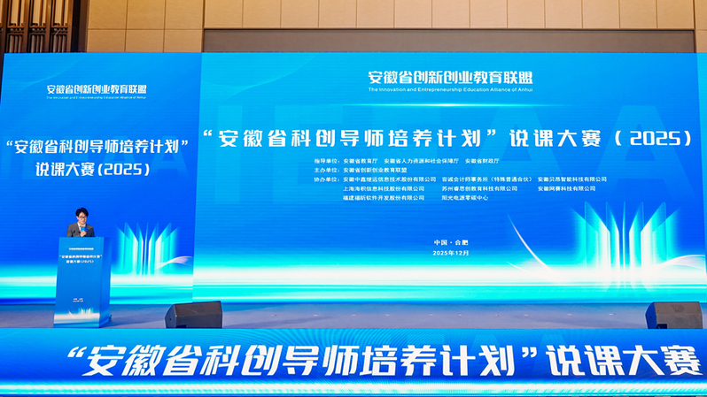 12月20日,安徽省创新创业教育联盟(以下简称“联盟”)主办的“安徽省科创导师培养计划”说课大赛(2025)现场决赛(以下简称“说课大赛”)在合肥成功举办。来自联盟各成员单位的优秀教师、行业专业人员等参赛选手以饱满的热情参加了比赛。
